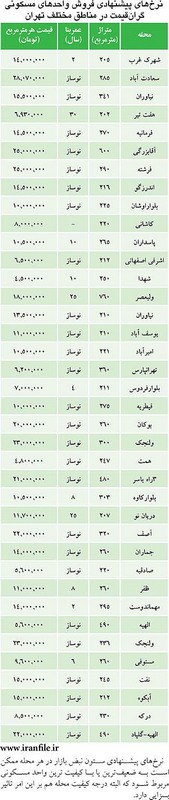 اگرچه رکود حاکم بر معاملات بازار مسکن سبب شده تا مالکانی که واحدهای مسکونی خود را برای فروش به بازار عرضه کردهاند، از قیمتهای اولیه خود قدری عقب نشینی کنند و قیمتهای پیشنهادی خود را کاهش دهند، اما در میان فایلهای عرضه شده به بازار هنوز هم واحدهای گران قیمت با ویژگیهای خاص دیده میشوند که مالکان آنها قیمتهای متفاوت از سایر واحدهای منطقه را برای ملک خود پیشنهاد کردهاند.